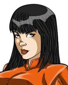 Hair Colour: Red fading into Orange (Superhero)/ Black (Regular)